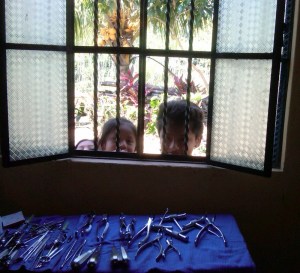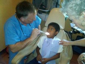 I spent today at the dental clinic. Robin’s ministry as a dentist (he is our team member from Columbia United Methodist Church) was amazing to witness. Jeanne assisted him with great ease, obviously enjoying her “once a year” role as a dental assistant. We treated 35 patients today…pulled over 50 teeth and filled 12 cavities or so. Kids lined up from early morning until late afternoon…brave…strong…and then screaming. We held their hands and prayed for their courage. We sang in the waiting room and I learned more spanish. We met many amazing children.