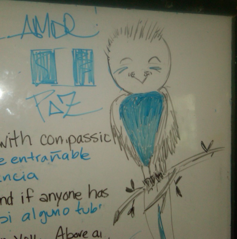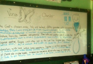 The last day of our work at the La Toma School was as if many days were passed; the memories are too great for only one day. We all will have our own perspective; here I can only share mine. Chester and I went into the 4th grade class (12 year olds) and began a conversation/teaching with them about what they believe gives them a good life and what hopes they have for their families.